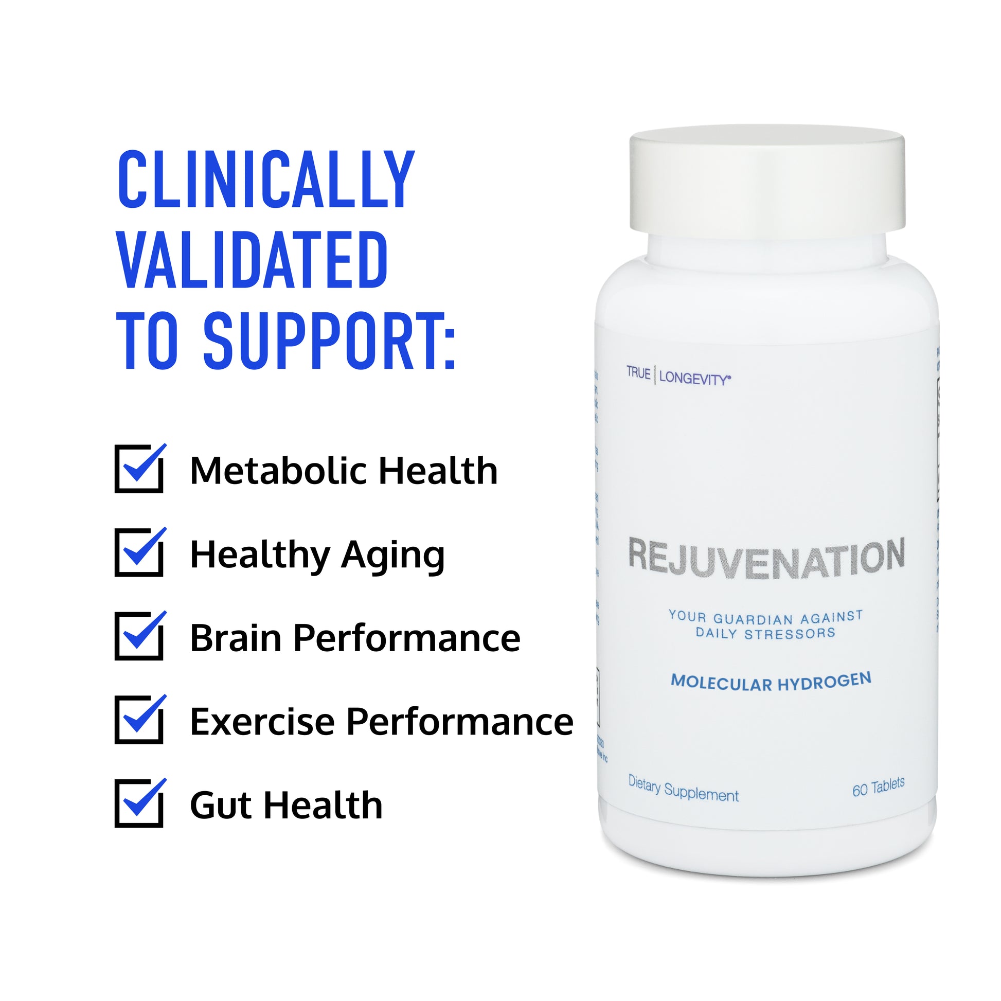 • Healthy Aging Support: Rejuvenation H2 tablets provide benefits for longevity, recovery, and daily vitality.